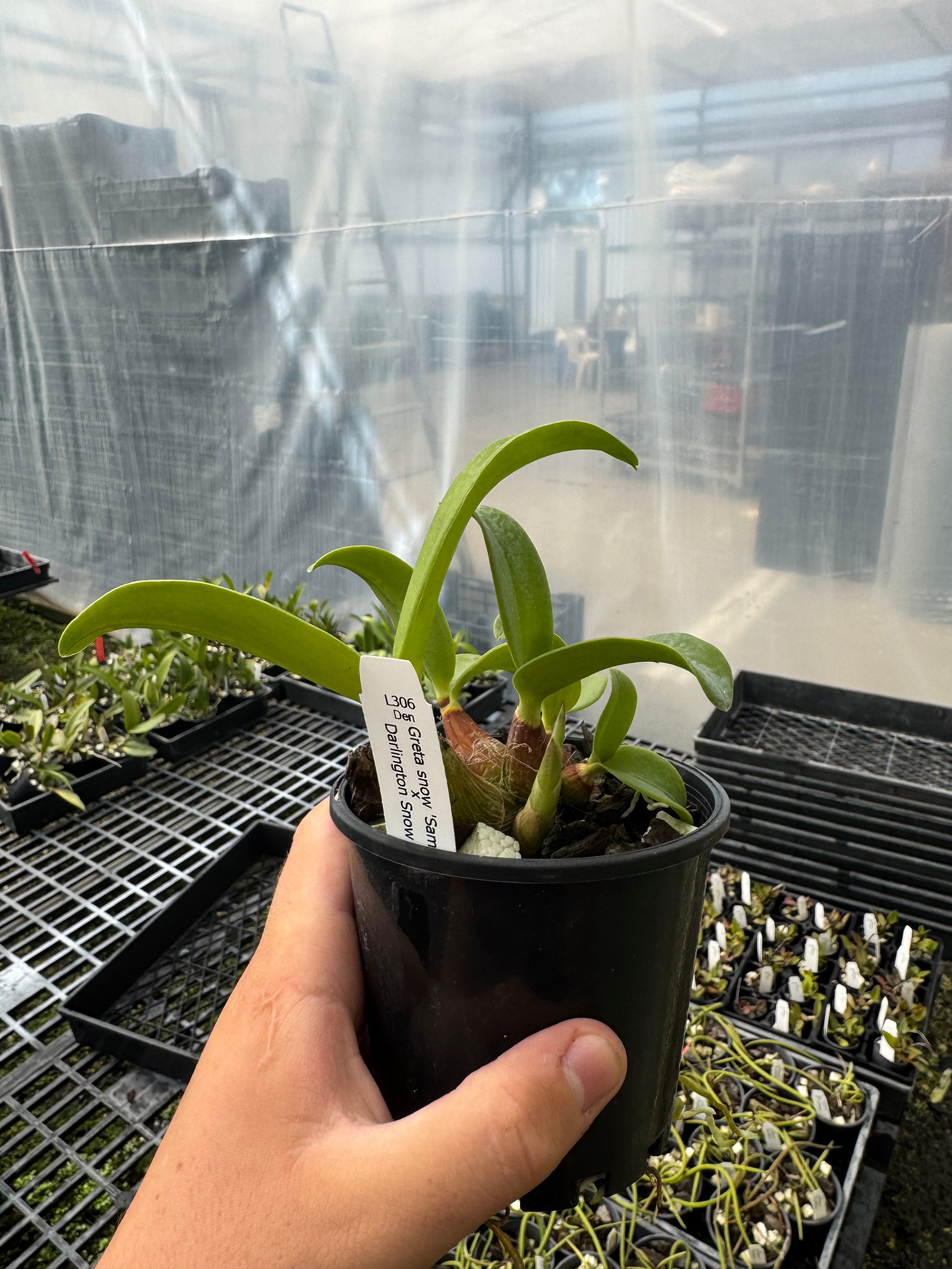 100mm Dendrobium Orchid Seedling. L306 (Greta snow 'Samford Celestial' FCC/AOC x Darlington Snow 'Wendy')
