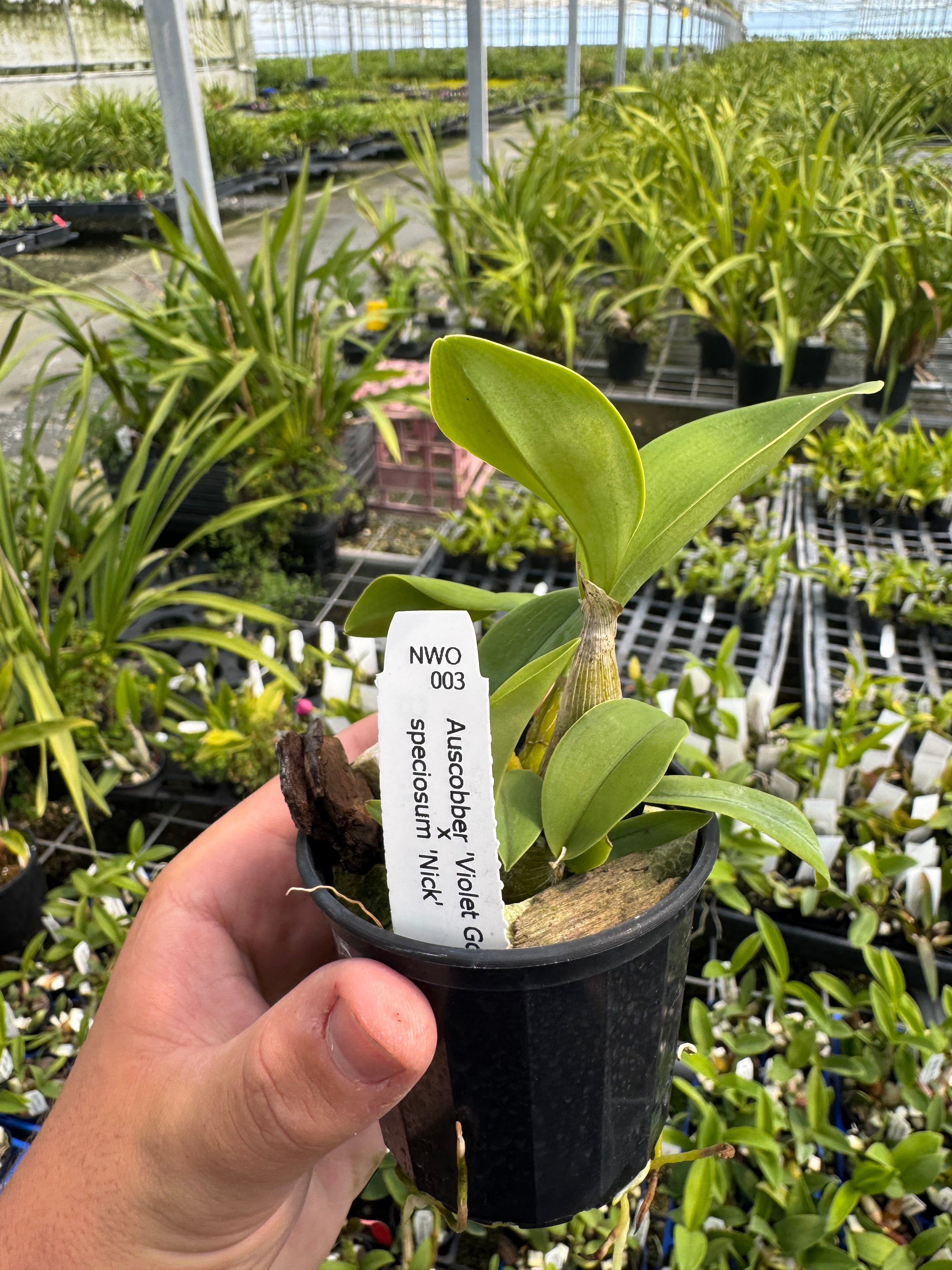 75mm Dendrobium Orchid Seedling. NWO-003 (Den Auscobber 'Violet Gold' × Dend speciosum 'Nick')