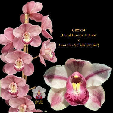 Early season content of splash petal pinks. Vigorous compact growth. Red edged lips and good shape content