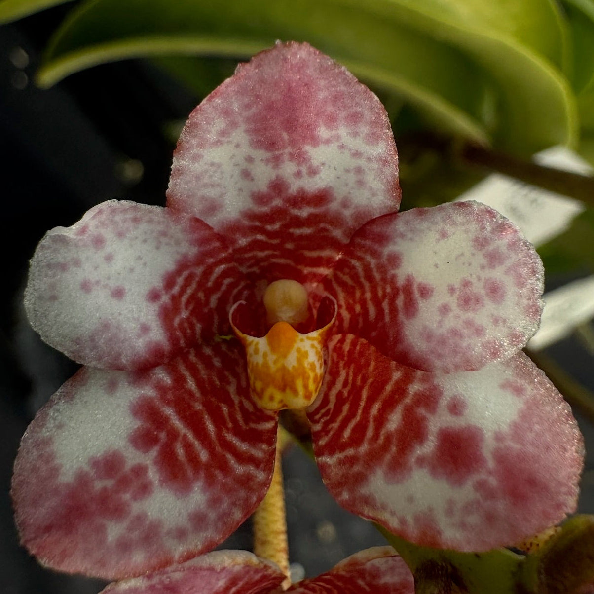 We flower many, many, many Sarcochilus. As we handle the plants we select special plants for those customers looking for just such a plant. This plant has been selected as being above average or having a new or outstanding colour. Or just a really nice plant.
