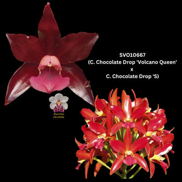 Chocolate Drop (C. guttata x C. aurantiaca) is one of those iconic hybrids - a good grower with great flowers. All the old-time orchid growers remember the cultivar ‘Kodama’. Our plants ‘SVO’ and ‘Volcano Queen’ are chance tetraploids from the cloning process. The flowers will be fragrant, waxy reds with red lips in heads of 15 or more. Chocolate Drop hasn’t been available recently, so we’re doing our best to make it popular again, and this time they will be tetraploids, even nicer than the original!
