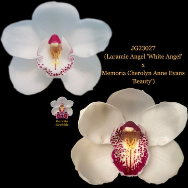 Cymbidium Flask JG23027 (Laramie Angel 'White Angel' x Memoria Cherolyn Anne Evans 'Beauty')