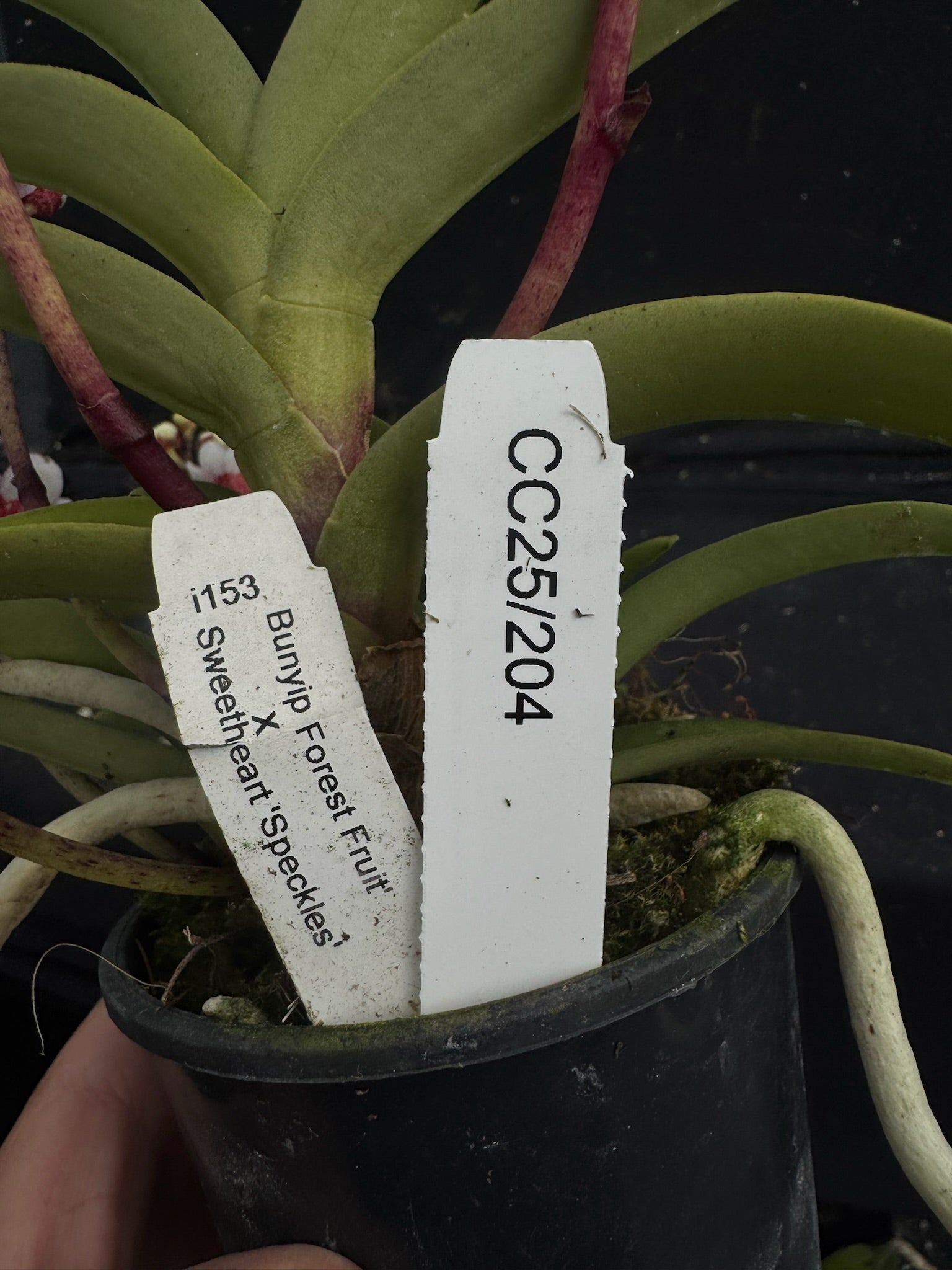 We flower many, many, many Sarcochilus. As we handle the plants we select special plants for those customers looking for just such a plant. This plant has been selected as being above average or having a new or outstanding colour. Or just a really nice plant.