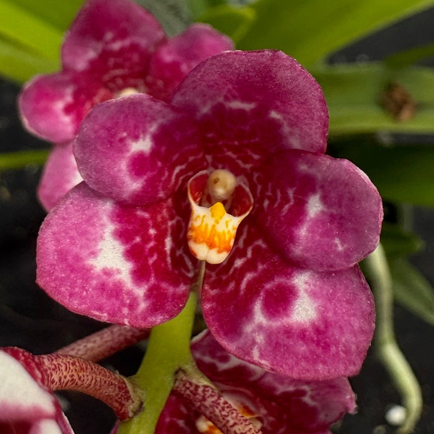 We flower many, many, many Sarcochilus. As we handle the plants we select special plants for those customers looking for just such a plant. This plant has been selected as being above average or having a new or outstanding colour. Or just a really nice plant.