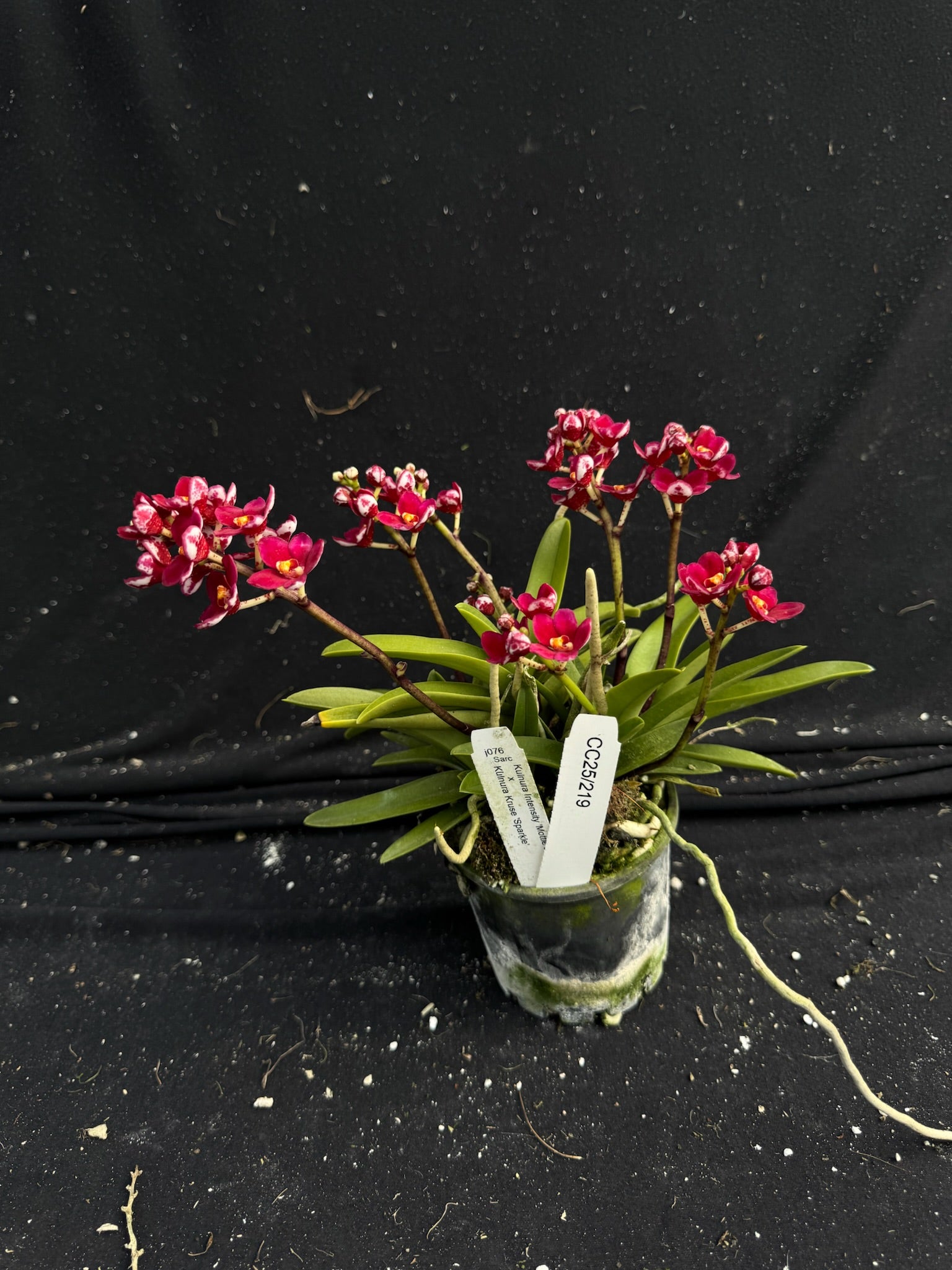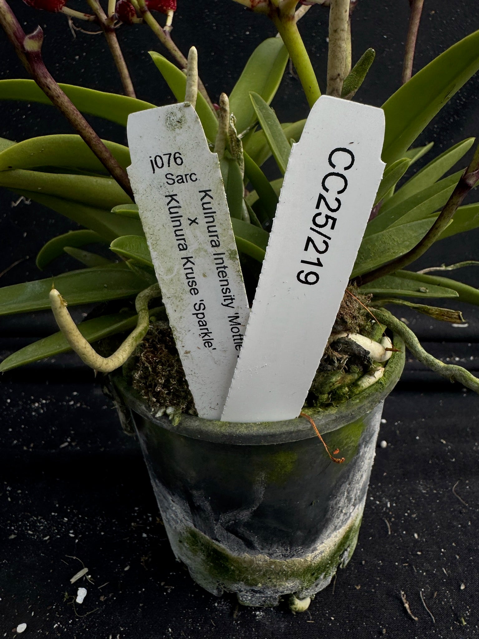 We flower many, many, many Sarcochilus. As we handle the plants we select special plants for those customers looking for just such a plant. This plant has been selected as being above average or having a new or outstanding colour. Or just a really nice plant.