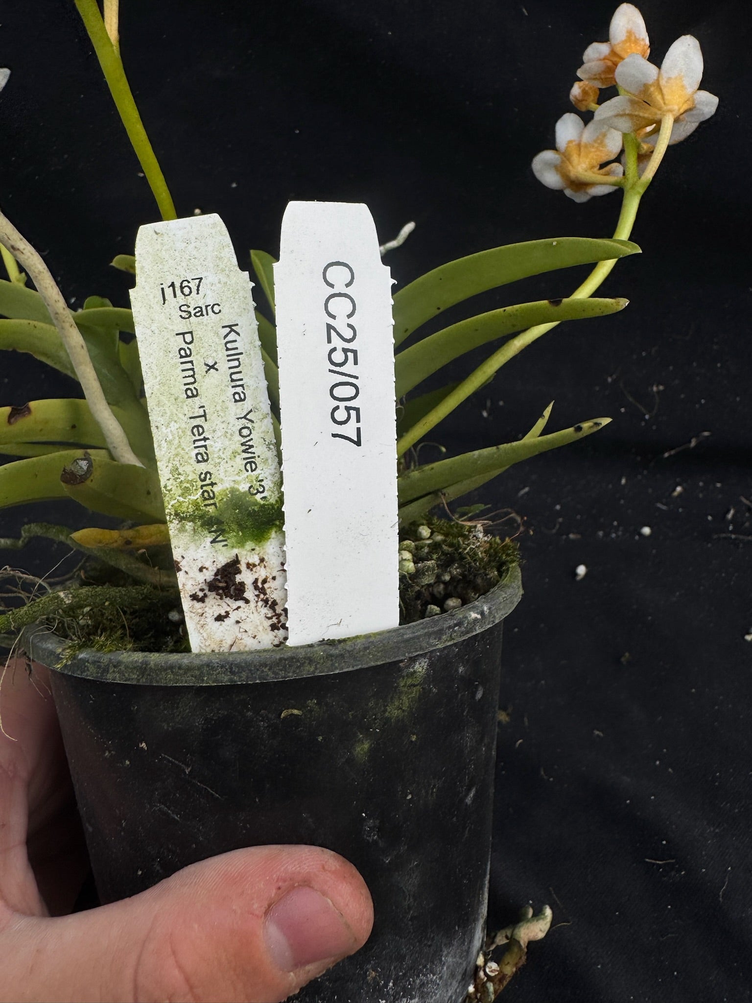 We flower many, many, many Sarcochilus. As we handle the plants we select special plants for those customers looking for just such a plant. This plant has been selected as being above average or having a new or outstanding colour. Or just a really nice plant.