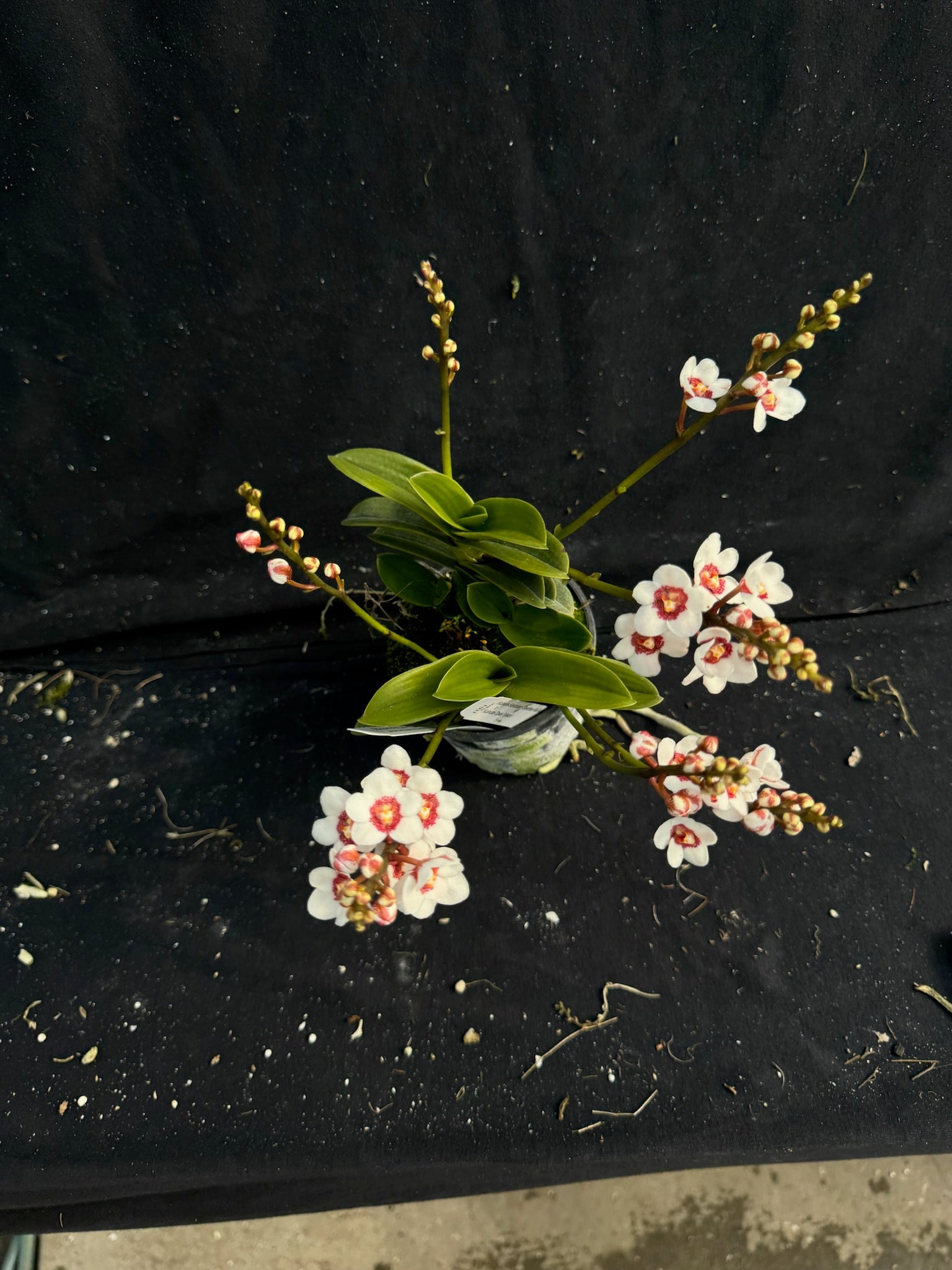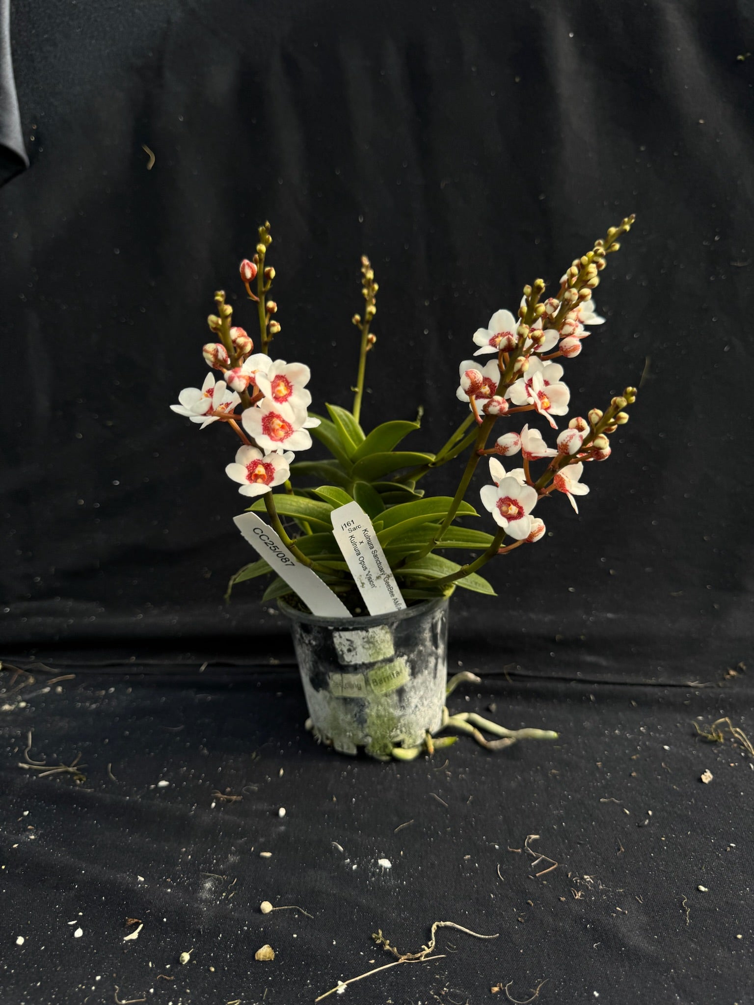 We flower many, many, many Sarcochilus. As we handle the plants we select special plants for those customers looking for just such a plant. This plant has been selected as being above average or having a new or outstanding colour. Or just a really nice plant.